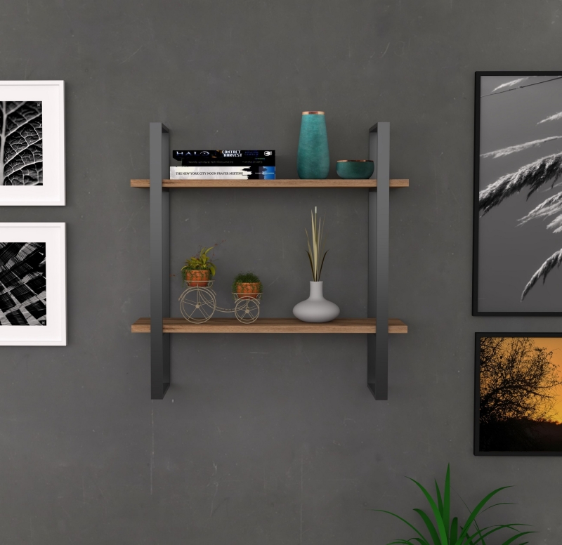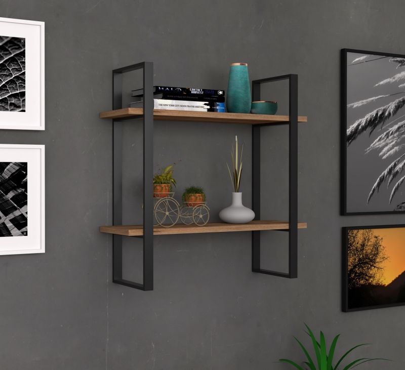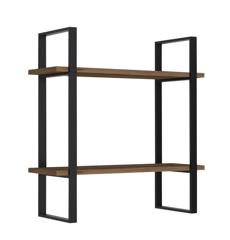 Nástenná polica BUBA ponúka dve police v dekore borovice atlantic v kombinácii s čiernym rámom.