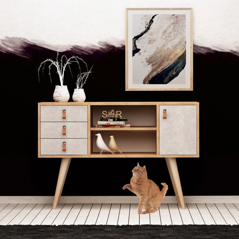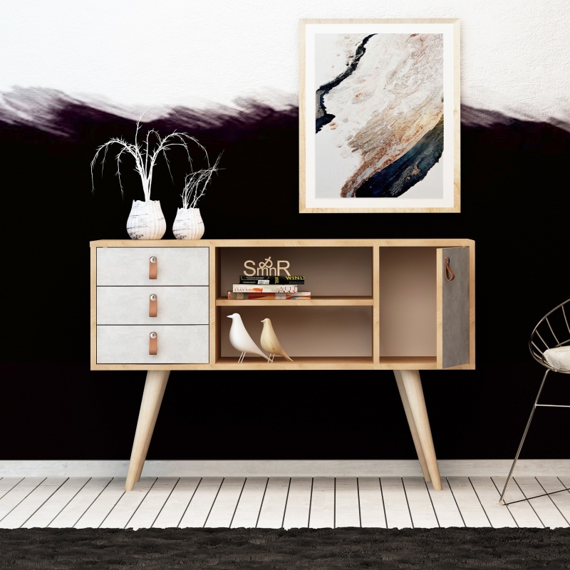 Skrinka stojí na vysokých nohách, ktoré uľahčia upratovanie pod ňou – skrinka bude skvele pasovať do predsiene alebo ako doplnková skrinka do pracovne.