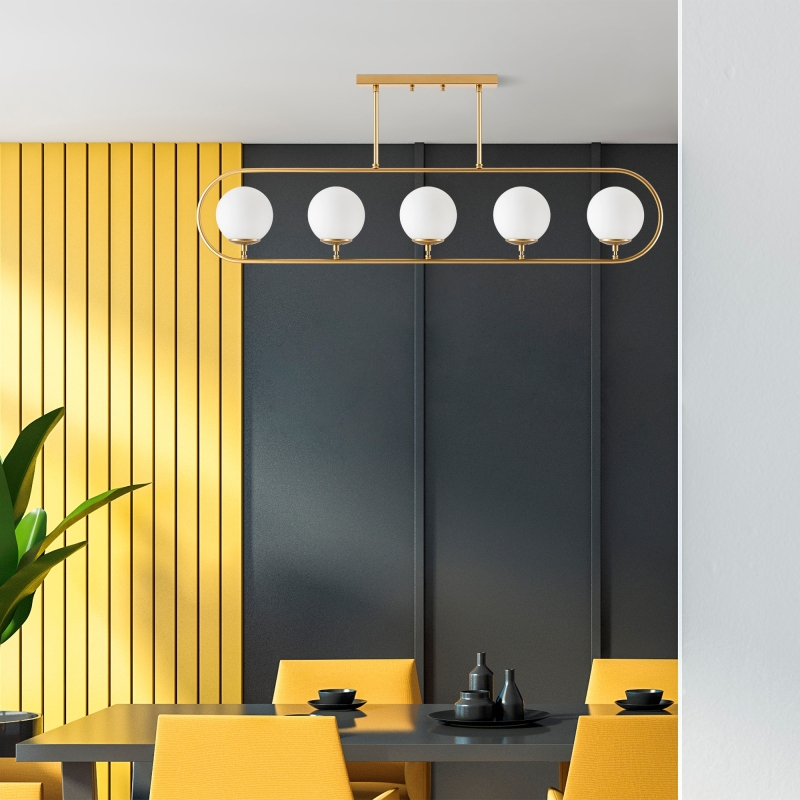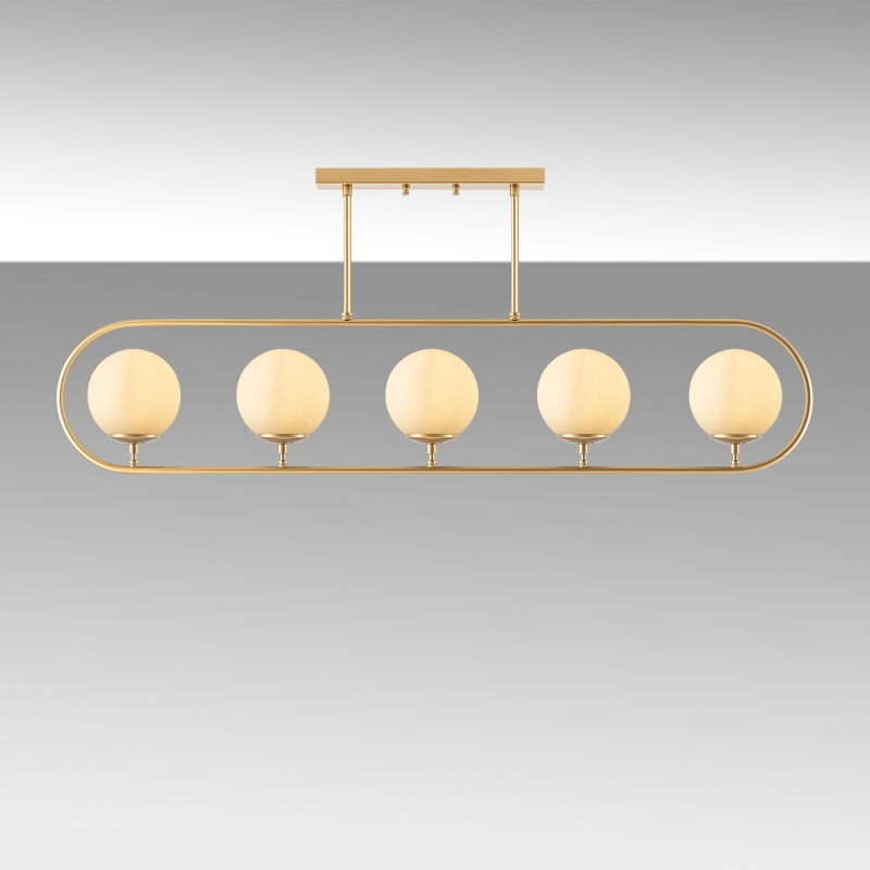 Najčastejšie sa zavesuje na strop, alebo na klenbu miestnosti. Kovové telo Sklenené tienidlá Kovová základná doska Veľkosť: 122 x 15 cm