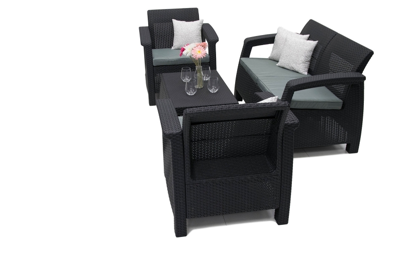 Celoplastová konštrukcia - nezrezne, neztrouchniví, nikdy sa nerozplete (jedná sa o veľmi pevnú konštrukciu, ktorá znesie naozaj veľké zaťaženie) Nikdy sa nerozplete. Konštrukcia, výplet aj vankúše odolávajú výkyvom počasia, poveternostným podmienkam, vode i UV žiareniu