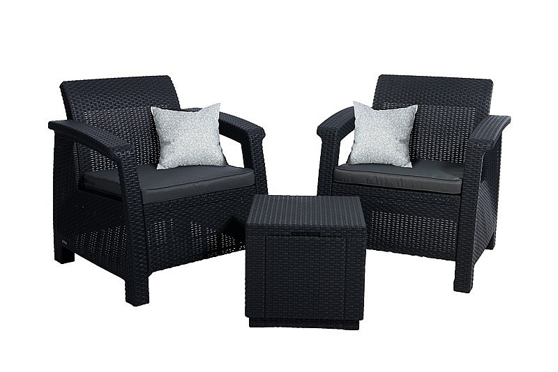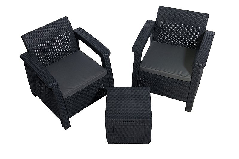 Dodávané v rozloženom stave Sestava obsahuje: 1x Záhradný ratanový taburet CUBE (antracit) ZADARMO PODUŠKA, 1x Záhradná ratanová zostava CORFU DUO (antracit)