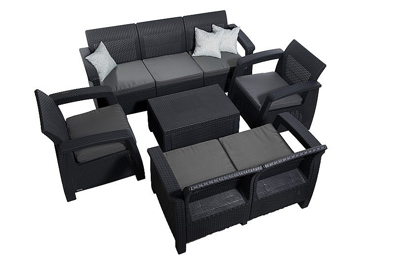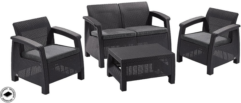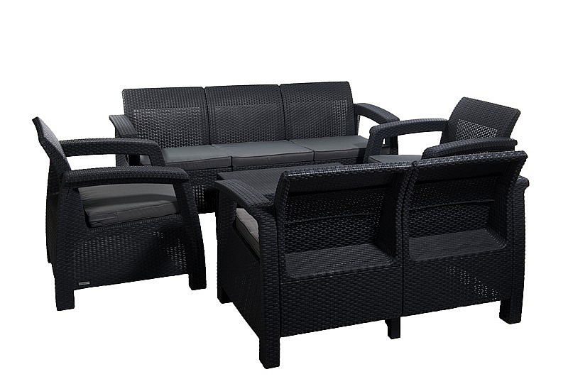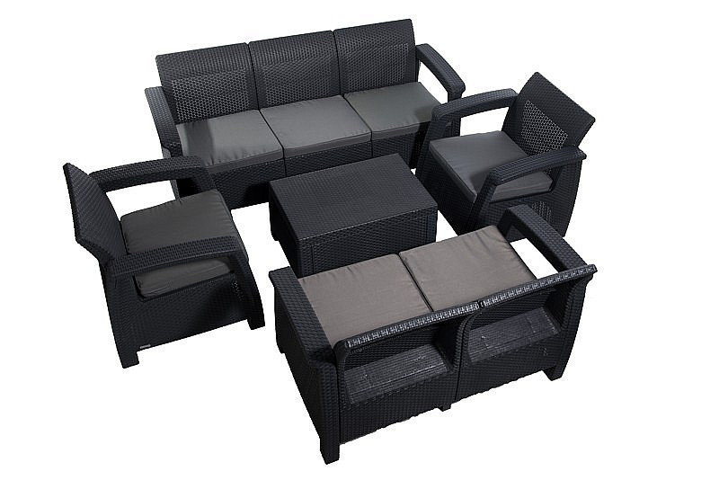 Sestava obsahuje: 1x Záhradná ratanová pohovka CORFU LOVE SEAT MAX (antracit), 1x Záhradná ratanová zostava CORFU antracit