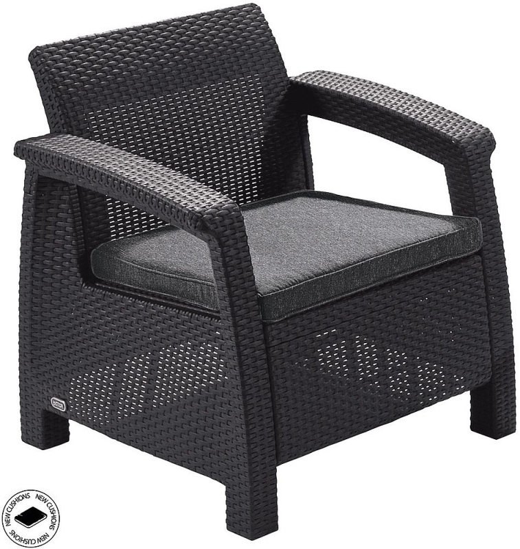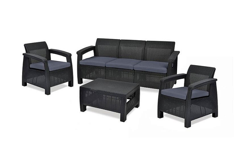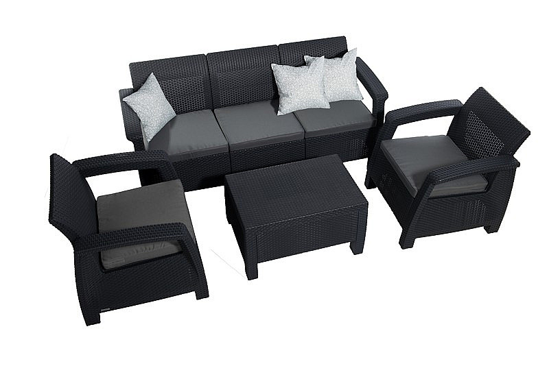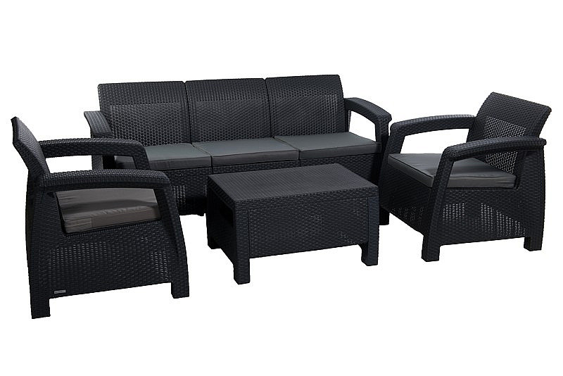 Sestava obsahuje: 1x Záhradná ratanová pohovka CORFU LOVE SEAT MAX (antracit), 1x Záhradná ratanová zostava CORFU WEEKEND antracit