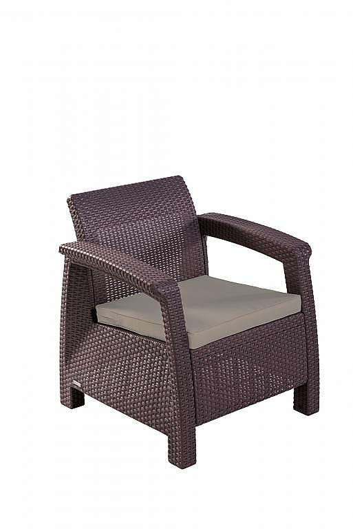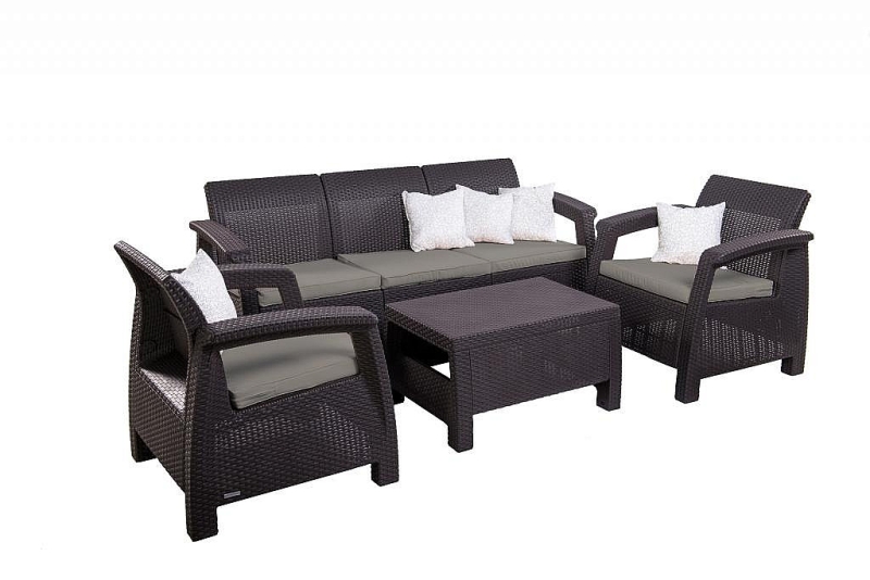 Dodávané v rozloženom stave Sestava obsahuje: 1x Záhradná ratanová pohovka CORFU LOVE SEAT MAX (hnedá), 1x Záhradná ratanová zostava CORFU WEEKEND hnedá