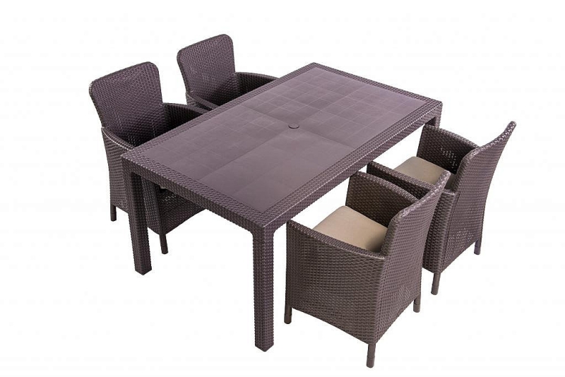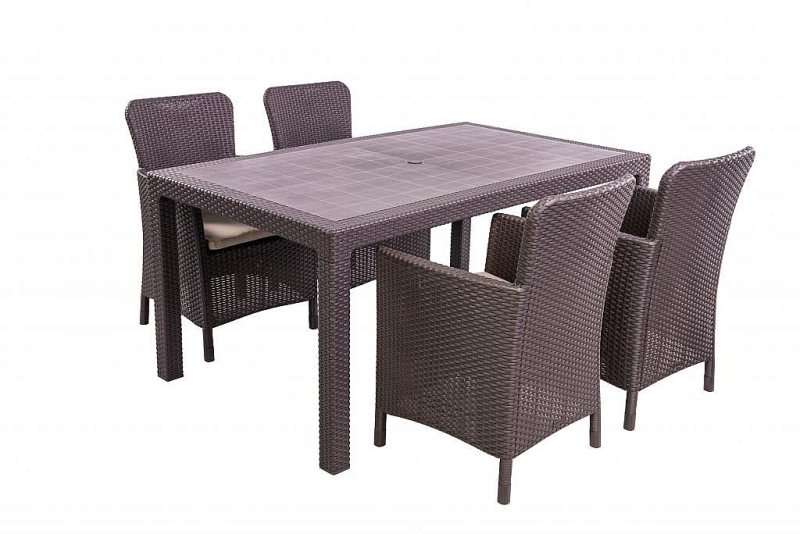 Kreslo je dodávané v demontovanom stave. Zloženie zaberie niekoľko málo minút. Sestava obsahuje: 4x Záhradné kreslo z umelého ratanu HAVANA (hnedá), 1x Záhradný stôl z umelého ratanu MANHATTAN 161x95 cm (hnedý)
