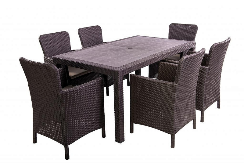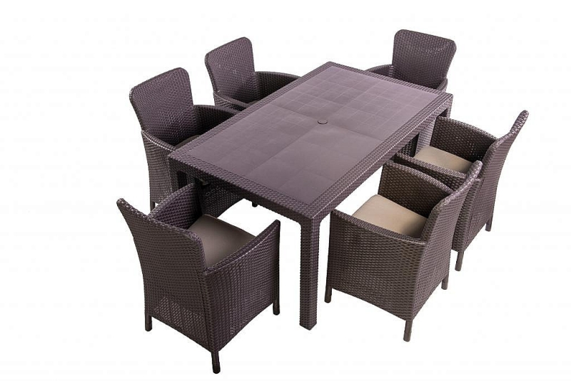 Kreslo je dodávané v demontovanom stave. Zloženie zaberie niekoľko málo minút. Sestava obsahuje: 6x Záhradné kreslo z umelého ratanu HAVANA (hnedá), 1x Záhradný stôl z umelého ratanu MANHATTAN 161x95 cm (hnedý)