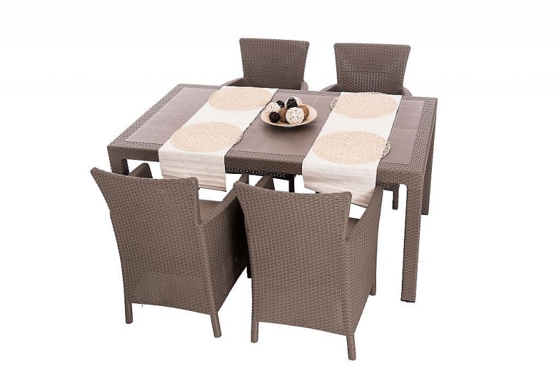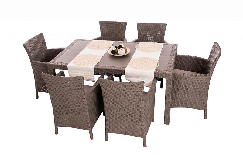 Sestava obsahuje: 6x Záhradné kreslo z umelého ratanu HAVANA (cappuccino), 1x Záhradný stôl z umelého ratanu MANHATTAN 161x95 cm (cappuccino)