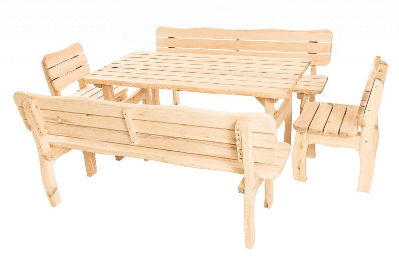 Hľadáte pevný záhradný nábytok z masívu? Stavte na set Viking z borovice, nezradí vás. Posedenie pre 8-10 ľudí ideálny na chatu alebo záhradku krčmy.