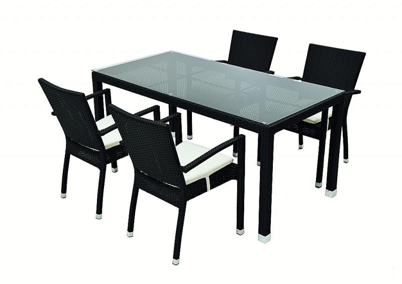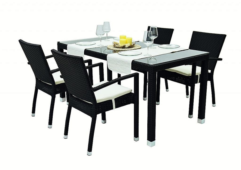 Jednoduchá údržba, elegantný vzhľad. Sestava obsahuje: 1x Záhradný ratanový stôl NAPOLI 160x80 cm (čierna), 4x Záhradné ratanové kreslo NAPOLI s poduškou (čierna)