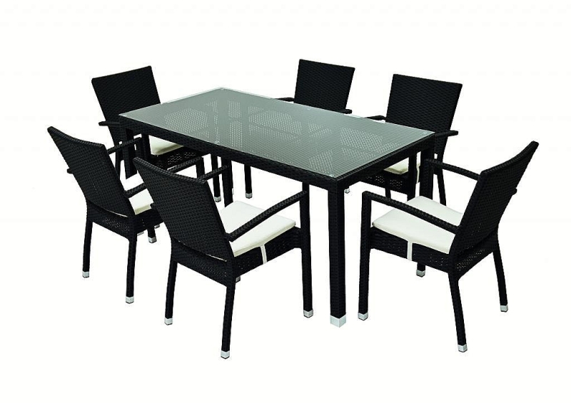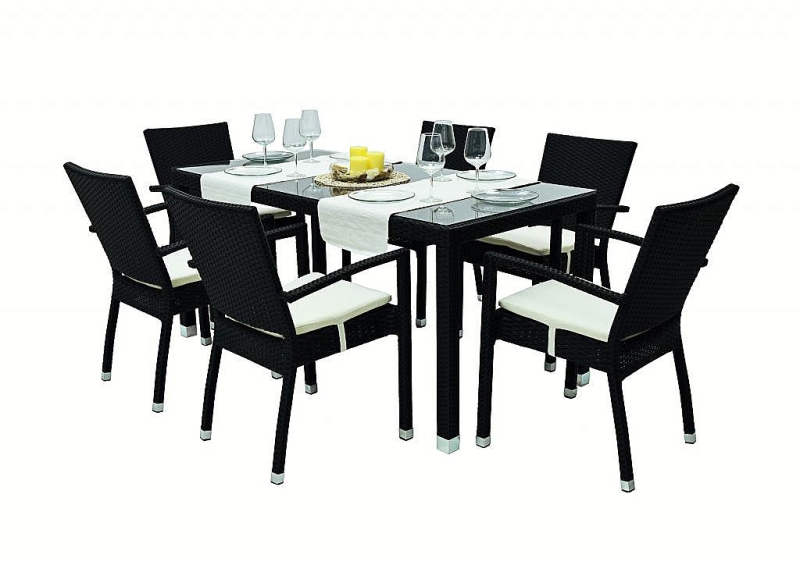 Jednoduchá údržba, elegantný vzhľad. Sestava obsahuje: 1x Záhradný ratanový stôl NAPOLI 160x80 cm (čierna), 6x Záhradné ratanové kreslo NAPOLI s poduškou (čierna)