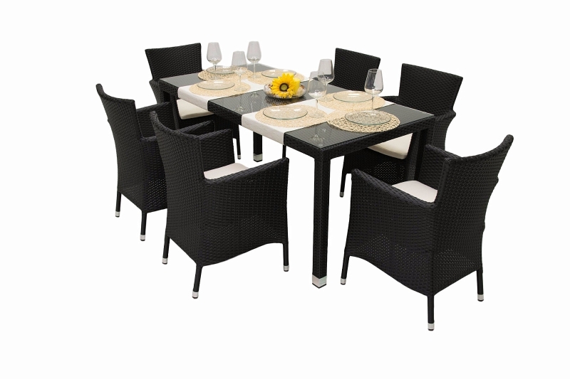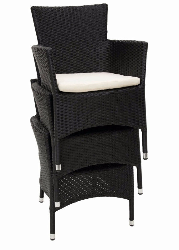 Výhodou je možnosť stohovania kresiel, ktoré je zabezpečené pomocou dvoch otvorov na nohy, ktoré sú šikovne maskované poduškou. Sestava obsahuje: 1x Záhradný ratanový stôl NAPOLI 160x80 cm (čierna), 6x Ratanové kreslo stohovateľné MODENA s poduškou (čierna)