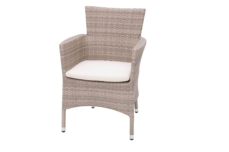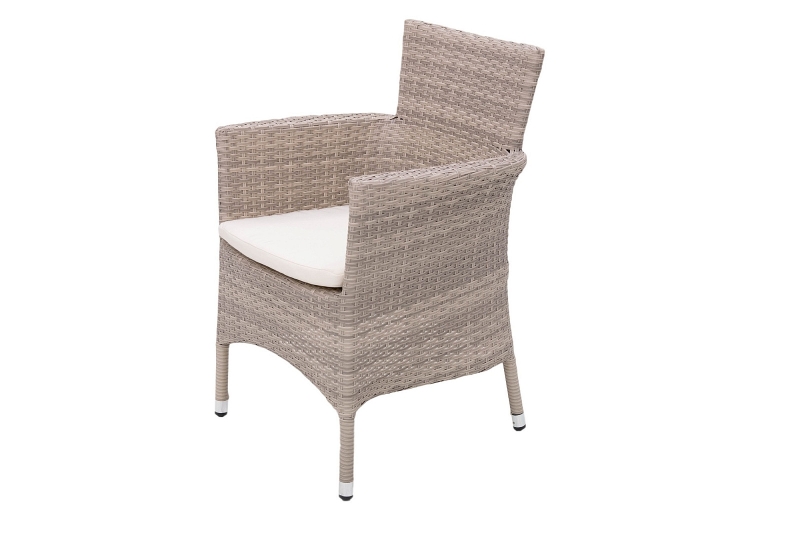 Výhodou je možnosť stohovania kresiel, ktoré je zabezpečené pomocou dvoch otvorov na nohy, ktoré sú šikovne maskované poduškou. Sestava obsahuje: 2x Ratanové kreslo stohovateľné MODENA s poduškou (sivo-béžová), 1x Záhradný ratanový stôl NAPOLI 80x80 cm (sivo-béžová)