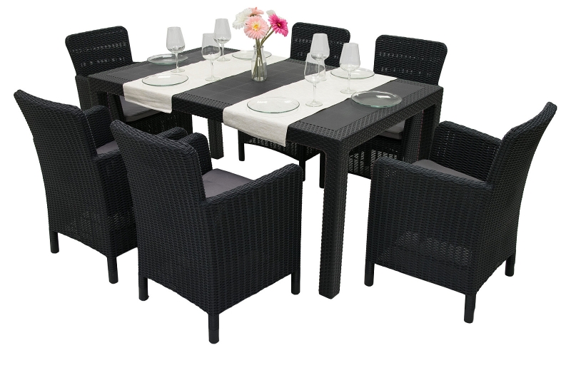 Ak vás produkt zaujal, pozrite si aj ostatné varianty zostavy Dante . Omrknúť môžete i ďalšie jedálenské zostavy z umelého ratanu - listovaného plastu v modernom dizajne, ktorými skvele vybavíte záhrady, terasy aj vnútorné priestory. Sestava obsahuje: 6x Záhradné kreslo z umelého ratanu DANTE DINNING (antracit), 1x Záhradný stôl z umelého ratanu MANHATTAN 161 x 95 cm (antracit)