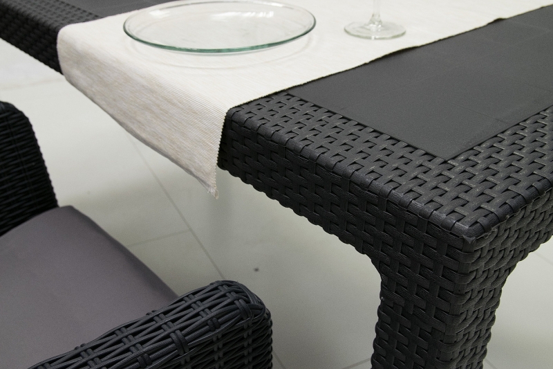 Je zhotovená z odolného umelého ratanu (polypropylénu), ktorý cenovo výhodnejšie ako pravý ratan, ale oveľa viac vydrží. Moderné odtieň antracit sa hodí k akejkoľvek terase, či plota - je skrátka univerzálny. Oživíte ho jednoducho doplnky a dekoráciami, ako sú kvety, prestieranie, či obrusy a slnečníkom, ktorý oceníte hlavne v letných sparných dňoch.