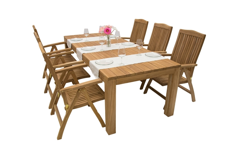 DEOKORK Záhradná teaková zostava MONTE LAGUNA 240 6x Záhradné polohovacie kreslo LAGUNA