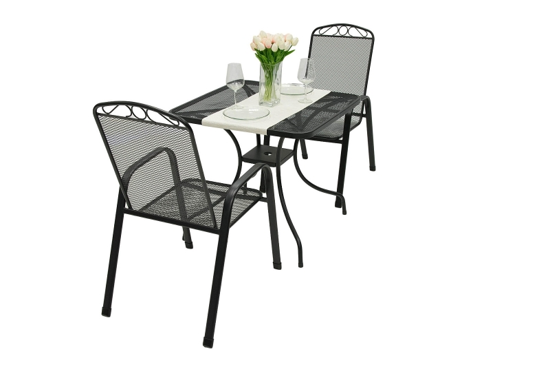 Malé kovové posedenie ideálne na každý balkón, či záhradu , kde nie je miesto nazvyš. Zostava Calgary pre dve osoby so stolom s otvorom na slnečník.
