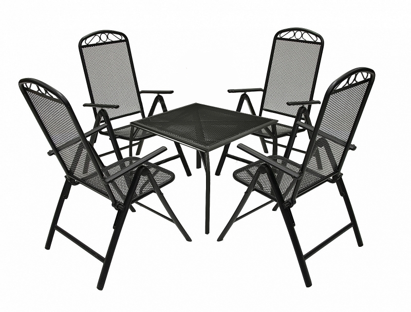 Preskúmajte ostatné zostavy kovového nábytku za priaznivé internetové ceny a vyberte si tú pravú podľa vašich prianí. Sestava obsahuje: 4x Kovové kreslo polohovacie GREY (čierna), 1x Kovový stôl EDEN 70x70 cm