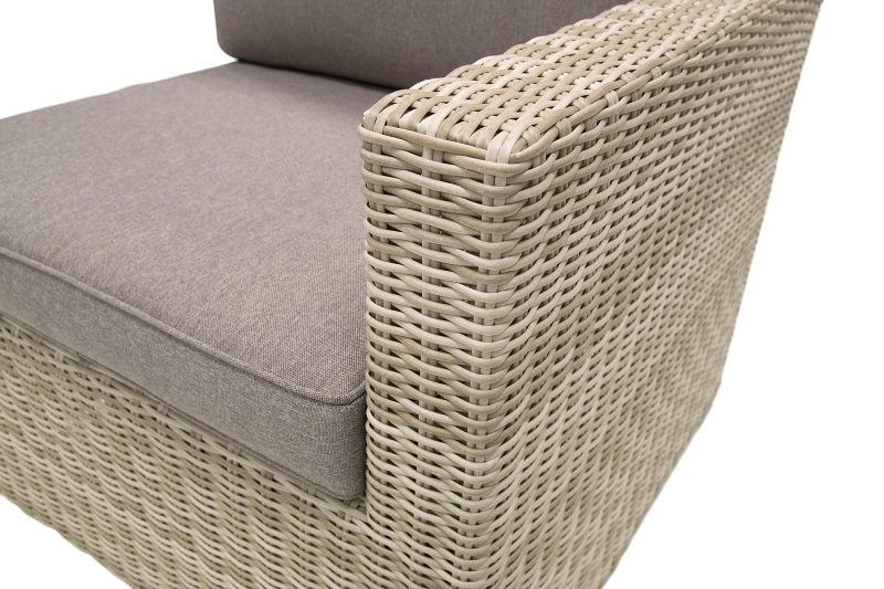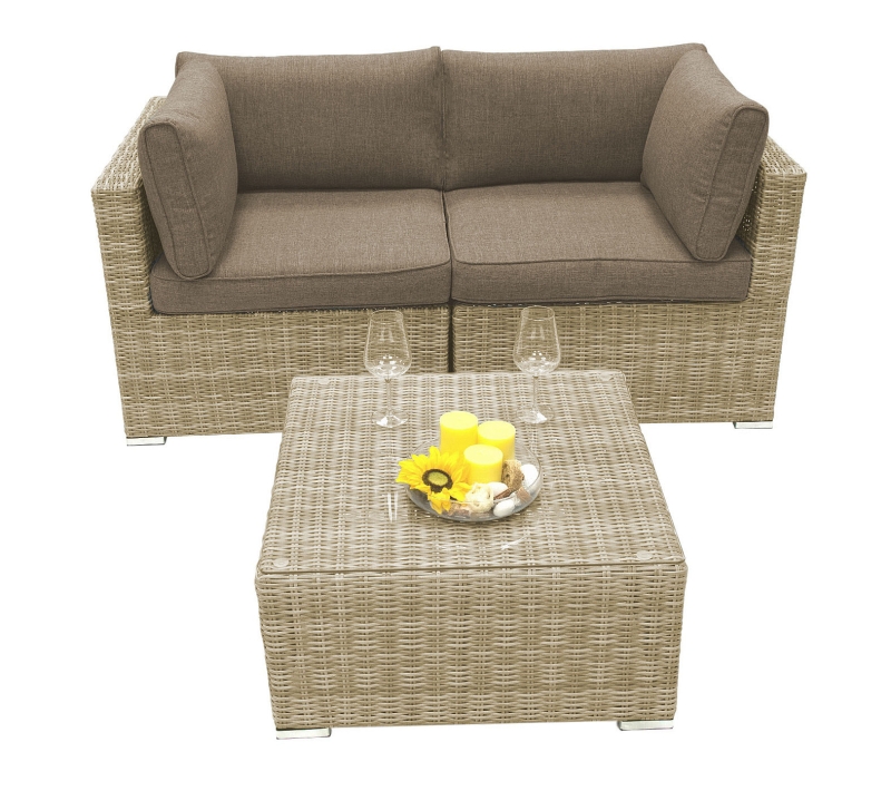 Ratanový nábytok z kolekcie modulových setov, ktorý vyniká svojou variabilitou.Zostavte si súpravy podľa Vašich predstáv.Umelý ratan sa pýši svojím nadčasovým dizajnom a takmer nulovú údržbou. Polyetylénové vlákno sa vyznačuje vysokou pružnosťou, pevnosťou a odolnosťou voči vlhkosti i UV žiareniu. Je odolný voči povětrmostním podmienkam a je vhodný na celoročné státie vonku (odporúčame pod zastrešením alebo ochranným obalom v zimných mesiacoch). Umelý ratan je ľahký, takže zaisťuje pohodlnú manimulaci záhradného nábytku po záhrade či terase.Konštrukcia je vyrobená z robustnej hliníkovej konštrukcie, ktorá je zvarená tak, aby zaistila vysokú nosnosť jednotlivých prvkov. Hliník sa vyznačuje vysokou odolnosťou a pevnosťou. Nedochádza ku korózii.Polstrovanie je v sile 10 cm, jedná sa o látku s hustotou 220 g/m2. Lemovanie po krajoch. Penová výplň. Všetky podušky sú vybavené zipsom.