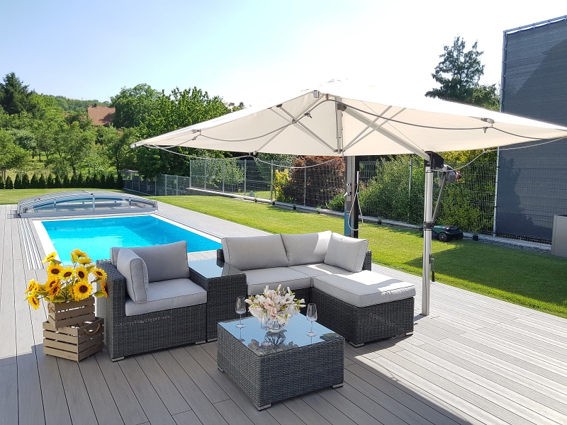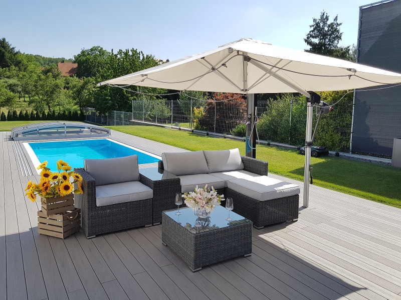 Ratanový nábytok z kolekcie modulových setov, ktorý vyniká svojou variabilitou.Zostavte si súpravy podľa Vašich predstáv.Umelý ratan sa pýši svojím nadčasovým dizajnom a takmer nulovú údržbou. Polyetylénové vlákno sa vyznačuje vysokou pružnosťou, pevnosťou a odolnosťou voči vlhkosti i UV žiareniu. Je odolný voči povětrmostním podmienkam a je vhodný na celoročné státie vonku (odporúčame pod zastrešením alebo ochranným obalom v zimných mesiacoch). Umelý ratan je ľahký, takže zaisťuje pohodlnú manimulaci záhradného nábytku po záhrade či terase.Konštrukcia je vyrobená z robustnej hliníkovej konštrukcie, ktorá je zvarená tak, aby zaistila vysokú nosnosť jednotlivých prvkov. Hliník sa vyznačuje vysokou odolnosťou a pevnosťou. Nedochádza ku korózii.Polstrovanie je v sile 10 cm, jedná sa o látku s hustotou 220 g/m2. Lemovanie po krajoch. Penová výplň. Všetky podušky sú vybavené zipsom.