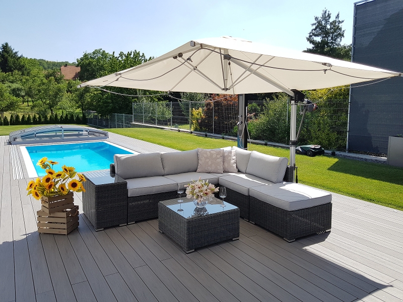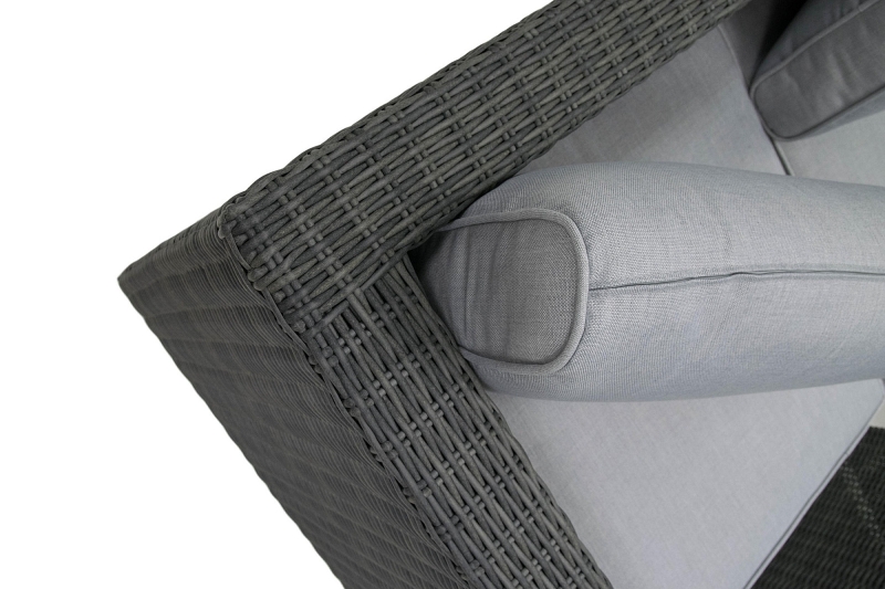 Ratanový nábytok z kolekcie modulových setov, ktorý vyniká svojou variabilitou.Zostavte si súpravy podľa Vašich predstáv.Umelý ratan sa pýši svojím nadčasovým dizajnom a takmer nulovú údržbou. Polyetylénové vlákno sa vyznačuje vysokou pružnosťou, pevnosťou a odolnosťou voči vlhkosti i UV žiareniu. Je odolný voči povětrmostním podmienkam a je vhodný na celoročné státie vonku (odporúčame pod zastrešením alebo ochranným obalom v zimných mesiacoch). Umelý ratan je ľahký, takže zaisťuje pohodlnú manimulaci záhradného nábytku po záhrade či terase.Konštrukcia je vyrobená z robustnej hliníkovej konštrukcie, ktorá je zvarená tak, aby zaistila vysokú nosnosť jednotlivých prvkov. Hliník sa vyznačuje vysokou odolnosťou a pevnosťou. Nedochádza ku korózii.Polstrovanie je v sile 10 cm, jedná sa o látku s hustotou 220 g/m2. Lemovanie po krajoch. Penová výplň. Všetky podušky sú vybavené zipsom.