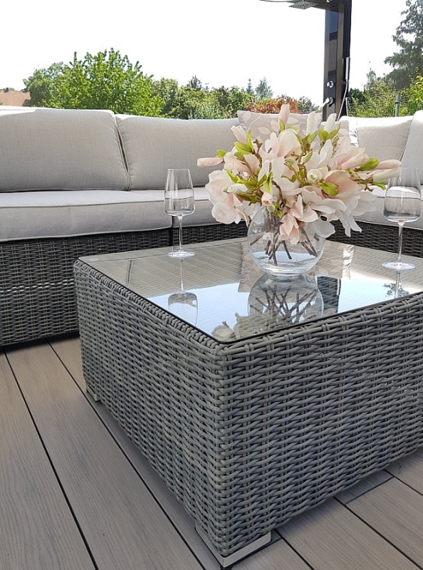 Ratanový nábytok z kolekcie modulových setov, ktorý vyniká svojou variabilitou.Zostavte si súpravy podľa Vašich predstáv.Umelý ratan sa pýši svojím nadčasovým dizajnom a takmer nulovú údržbou. Polyetylénové vlákno sa vyznačuje vysokou pružnosťou, pevnosťou a odolnosťou voči vlhkosti i UV žiareniu. Je odolný voči povětrmostním podmienkam a je vhodný na celoročné státie vonku (odporúčame pod zastrešením alebo ochranným obalom v zimných mesiacoch). Umelý ratan je ľahký, takže zaisťuje pohodlnú manimulaci záhradného nábytku po záhrade či terase.Konštrukcia je vyrobená z robustnej hliníkovej konštrukcie, ktorá je zvarená tak, aby zaistila vysokú nosnosť jednotlivých prvkov. Hliník sa vyznačuje vysokou odolnosťou a pevnosťou. Nedochádza ku korózii.Polstrovanie je v sile 10 cm, jedná sa o látku s hustotou 220 g/m2. Lemovanie po krajoch. Penová výplň. Všetky podušky sú vybavené zipsom.