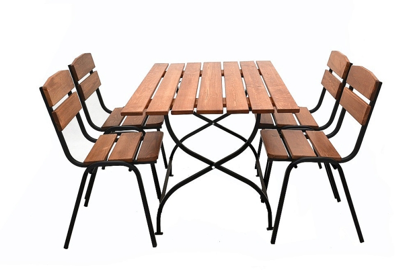 Sestava obsahuje: 4x Drevené záhradné stohovateľné kreslo LIMA, 1x Drevený záhradný stôl LIMA
