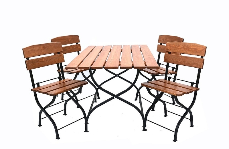 Sestava obsahuje: 1x Drevený záhradný stôl LIMA, 4x Drevené záhradné skladacie kreslo LIMA