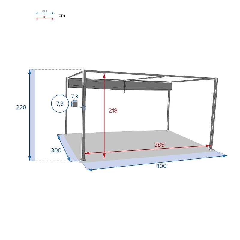Na konštrukciu strechy sa nasunie polyesterové plátno 200 g / m², ktoré chránia pred slnkom a dažďom. Vďaka posuvnému systému si môžete nastaviť krytia, ktoré vám vyhovuje - úplne / čiastočne zatiahnuť strechu, alebo ju ponechať otvorenú.
