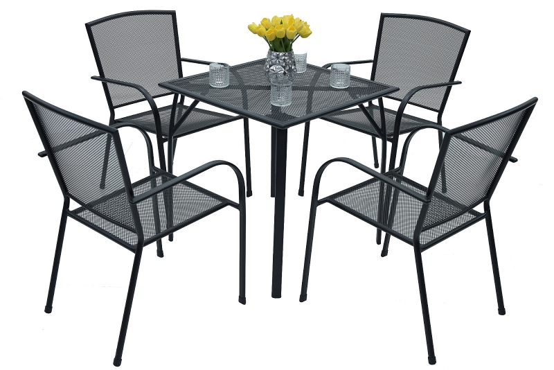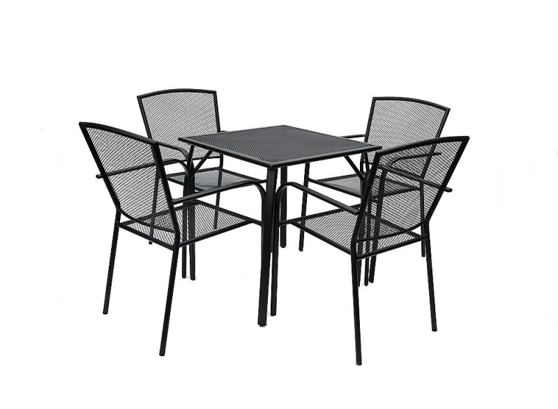 Sestava obsahuje: 1x Kovový stôl EDEN 70x70 cm, 4x Kovová stolička MAYA (čierna)