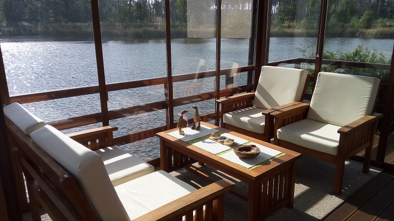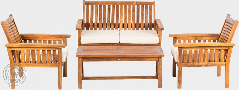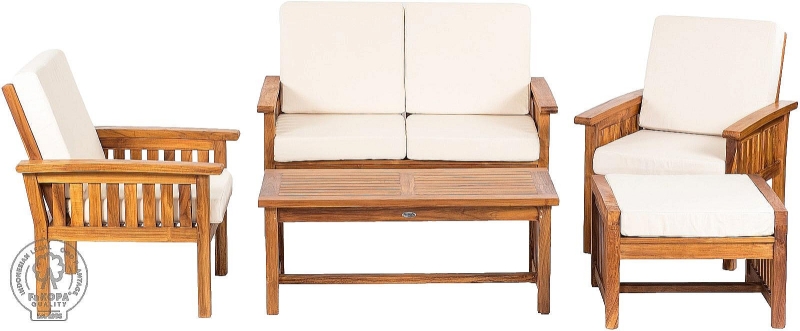áš drevený nábytok je navrhnutý hlavne na vonkajšie použitie s dlhou životnosťou. Súčasťou sú aj pohodlné podušky.