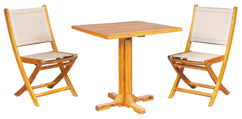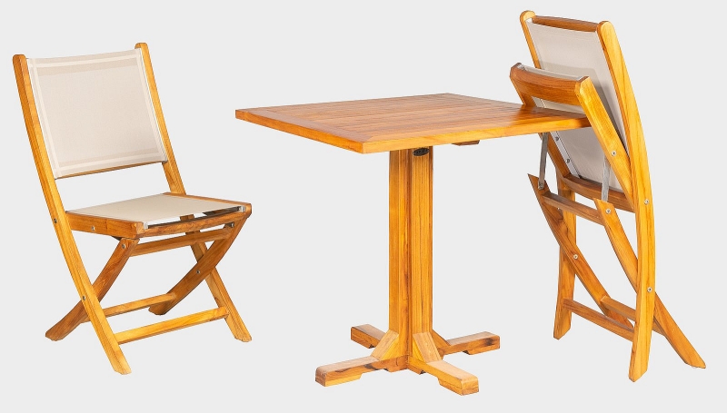 Sestava obsahuje: 1x Záhradný teakový stôl DANTE 75x75 cm, 2x Záhradná teaková stolička ANNA