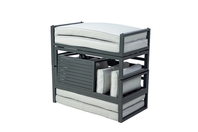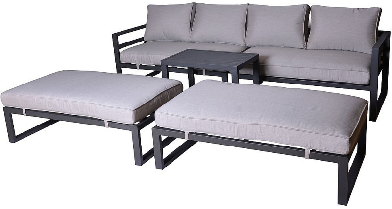 Luxusná súprava s hliníkovou konštrukciou, ktorá je pokrytá šedou práškovou farbou.