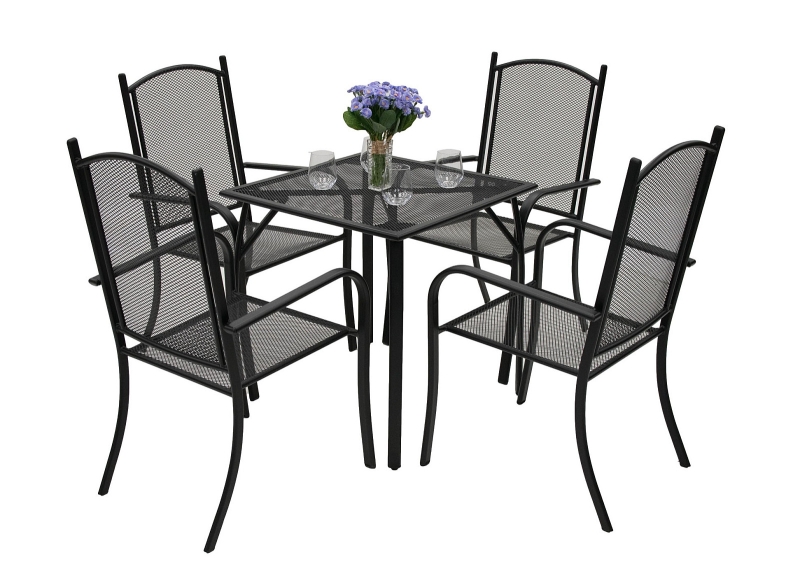 Sestava obsahuje: 4x Kovové kreslo NANCY (čierne), 1x Kovový stôl EDEN 70x70 cm