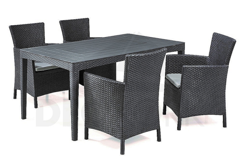 Sestava obsahuje: 4x Záhradné kreslo z umelého ratanu HAVANA (antracit), 1x Záhradný stôl z umelého ratanu GIRONA 160x90 cm (antracit)