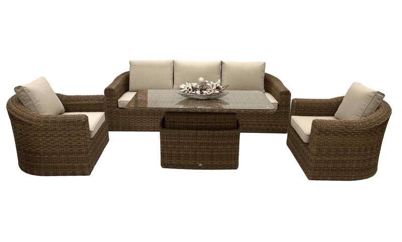 Luxusná zostava záhradného nábytku z umelého ratanu BORNEO LUXURY hnedá . Dokonalý komfort pohovky so stolíkom a polstrovaním v cene vás nadchne.