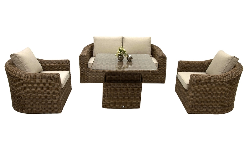 S posedením BORNEO LUXURY sa aj na vlastnej záhrade budete cítiť ako na exotickej dovolenke. Kvalitný prepletaný umelý ratan v autentickom hnedom odtieni prírodného ratanu štýlovo dopĺňajú béžové sedáky a vankúše z pevnej tkaniny o gramáži 220 g/m 2 , čerešničkou na torte je doplnok v podobe dosky stolíka z tvrdeného skla.