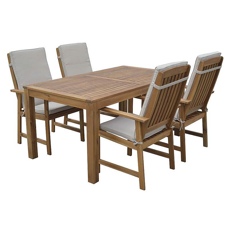 Sestava obsahuje: 4x Záhradné kreslo pevné ENGLAND vr. podušky, 1x Záhradný obdľžnikový stôl ENGLAND 160 x 100 cm