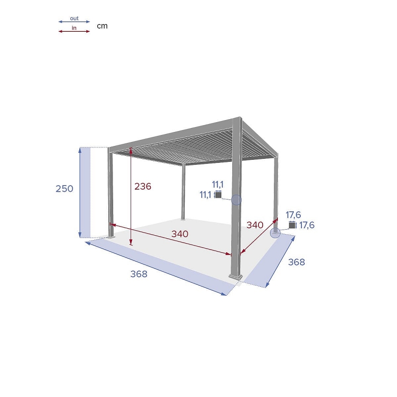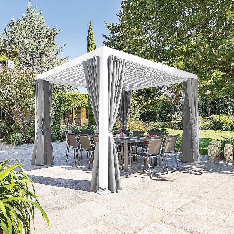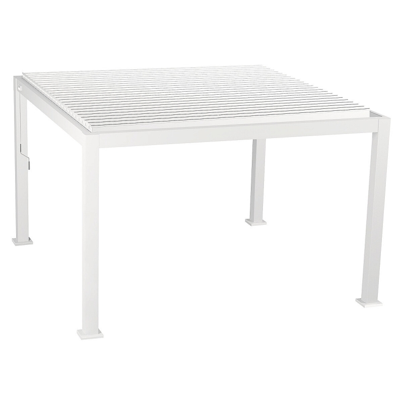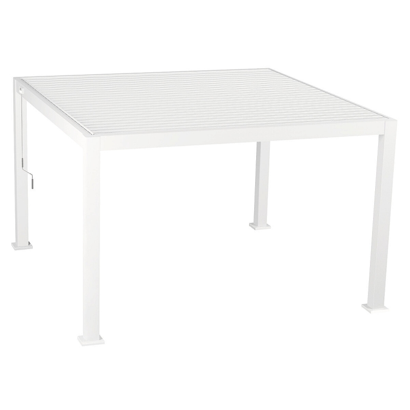 Pergola je vybavená lamelovou strechou, ktorú je možné otáčať kľukou a prepúšťať alebo filtrovať svetlo. Ideálne riešenie pre tých, ktorí chcú veľký priestor na vonkajšie posedenie.