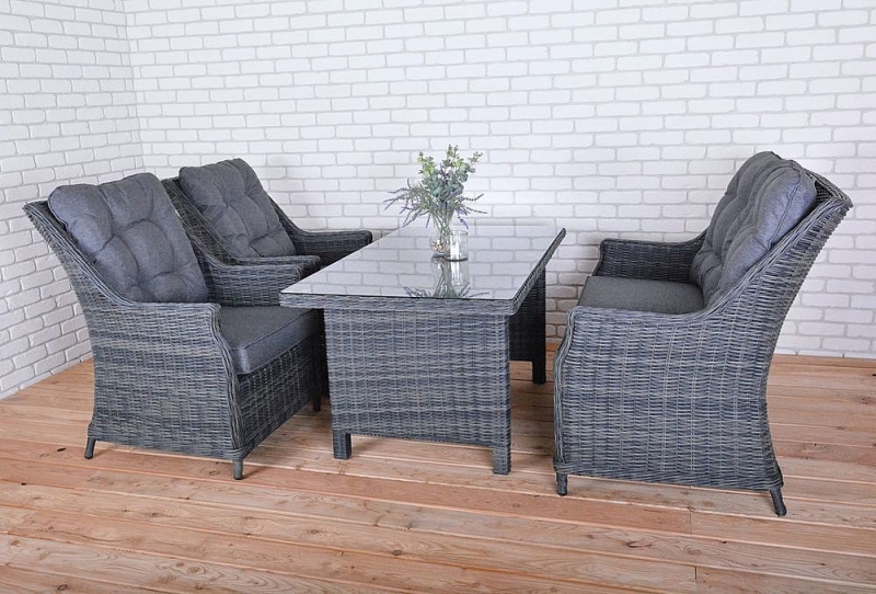 Luxusná súprava z kvalitného umelého ratanu, ktorý odoláva UV žiareniu a teplote od 50 °C do -10 °C.
