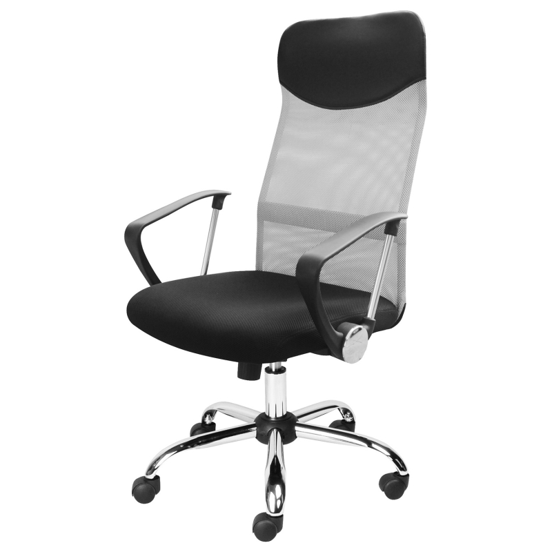 Kancelárske kreslo PRESIDENT strieborné s textilným poťahom, operadlom z textilnej sieťoviny a imitácie kože, vo vyhotovení čierna/strieborná, má chrómovaný kríž a hojdací mechanizmus. Výška sedu kresla je 41 – 50 cm, výška operadla je 68 cm, v kresle sa bude pohodlne sedieť. Nosnosť je do 120 kg.Kancelárske kreslo PRESIDENT strieborné je veľmi obľúbené nielen pre svoje pohodlie, ale vďaka striebornej farbe vynikne za ľubovoľným pracovným stolom. Kreslo s textilným poťahom, operadlom z textilnej sieťoviny a imitácie kože, vo farebnom vyhotovení čierna/strieborná, má pevný chrómovaný kríž a príjemný hojdací mechanizmus. Kreslo je výškovo nastaviteľné, výška sedu kresla je 41 – 50 cm, výška operadla je 68 cm, v kresle sa vám teda bude pohodlne sedieť. Kreslo má odnímateľné podrúčky a je vybavené plastovými kolieskami vhodnými pre rôzne povrchy. Kreslo ponúka možnosť aretácie v základnej sediacej polohe a má posuvnú chrbtovú výstuhu. Odporučená nosnosť kresla je do 120 kg. Ak pracujete pri počítači, určite toto kreslo oceníte, už nikdy váš totiž nebude bolieť chrbát. Kancelárske kreslo PRESIDENT strieborné sa bude hodiť ako do študentskej izby, tak do pracovne.