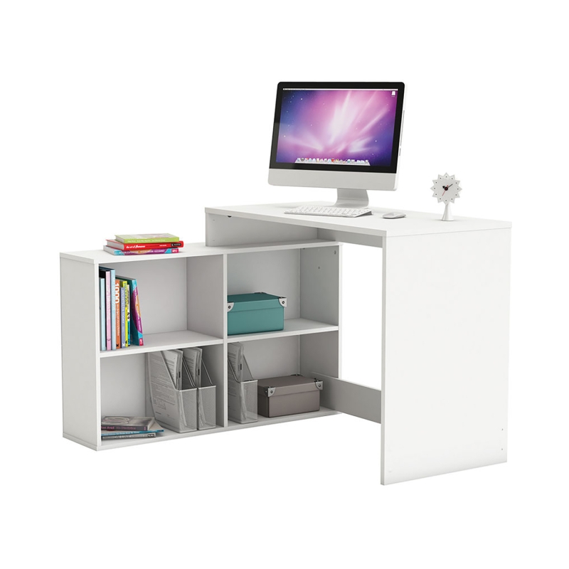 Rohový písací stôl CORNER, vo farebnom vyhotovení biela, bude vyzerať skvele ako v študentskej izbe, tak v pracovni. Biely stôl je vhodný aj do menších izieb a garsóniek, vďaka šikovnému dizajnu. Ponúkne vám však hneď štyri police v rozmere 48 × 24 × 29 cm s montážou možnou na pravú aj ľavú stranu.Za moderným písacím stolom bude radosť pracovať aj písať domáce úlohy. Rohový písací stôl vám totiž poskytne praktický úložný priestor po boku pracovnej dosky, takže budete mať všetky dokumenty, knihy a iné potrebné veci doslova poruke. Biely písací stôl vám ponúkne hneď štyri police v rozmere 48 × 24 × 29 cm s montážou možnou na pravú aj ľavú stranu. Rohový písací stôl CORNER, vo farebnom vyhotovení biela, bude vyzerať dobre ako v študentskej izbe, tak v pracovni. Biely stôl je vhodný aj do menších izieb a garsóniek, vďaka svojmu šikovnému dizajnu. Biely stôl tiež ľahko oživíte farebnými boxmi či krabicami. Rohový písací stôl CORNER, vo farebnom vyhotovení biela, možno tiež dobre kombinovať s nábytkom vo vyhotovení biela a vytvoriť si tak úplne príjemné prostredie na prácu.