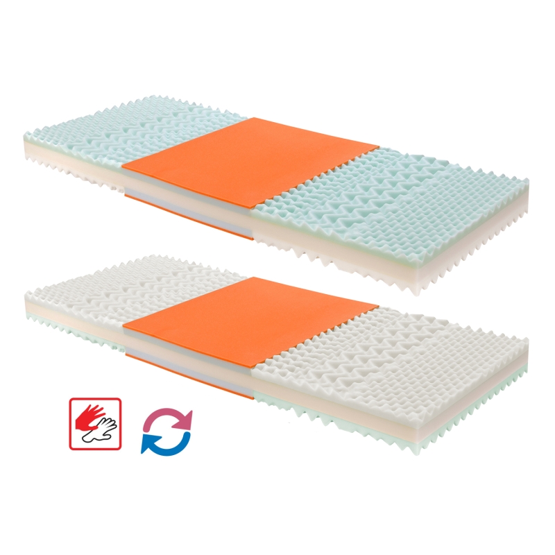 Matrac s poťahom IDEA TRIAN 80 × 200 × 14, 1+1 zadarmo, obsahuje pamäťovú Visco penu rôznych tuhostí na odľahčenie kĺbom a pohybovému aparátu. 7-zónová anatomická profilácia na masáž v priebehu spánku. Matrac je vhodný pre všetky typy roštov. Poťah snímateľný a prací do 40 °C. Nosnosť do 120 kg.Kvalitný matrac je pre pokojný a ničím nerušený spánok základ. Ak hľadáte dva matrace do jednolôžok v rozmere 80 × 200, či matrac do dvojlôžka v rozmere 160 × 200 je táto akcia priamo pre vás. Matrac s poťahom IDEA TRIAN 80 × 200 × 14 v akcii dva matrace za cenu jedného, je ponuka, ktorá sa neopakuje. Matrac obsahuje pamäťovú penu rôznych tuhostí v panvových zónach na odľahčenie kĺbom a celému pohybovému aparátu. 7-zónová anatomická masážna profilácia prináša veľmi jemnú masáž v priebehu spánku. Matrac s Visco penou a systémom rozdielnej tuhosti strán je vhodný pre všetky typy roštov. Ak teda preferujte s partnerom rozdielnu tuhosť matraca, budete spokojní obaja. Matrac má snímateľný a prací poťah do 40 °C. Odporúčaná nosnosť matraca je do 120 kg.