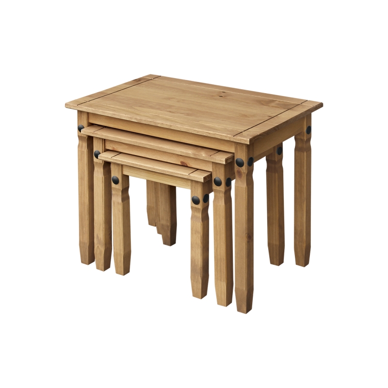Súprava 3 stolíkov CORONA vosk, vo vyhotovení masív borovica, sa bude hodiť ku každej pohovke a do obývacej izby zariadenej nábytkom CORONA. Súprava je voskovaná v medovom odtieni, rozmer 66 × 42 × 54 cm, stredného stolíka 52 × 37 × 47 cm, najmenšieho stolíka 38 × 32 × 40 cm. Súčasť zostavy Corona.Súprava 3 stolíkov CORONA vosk, vo vyhotovení masív borovica, sa bude hodiť ku každej pohovke a predovšetkým potom do obývacej izby zariadenej nábytkom CORONA. Súprava je voskovaná v krásnom medovom odtieni, rozmer 66 × 42 × 54 cm, stredného stolíka 52 × 37 × 47 cm, najmenšieho stolíka 38 × 32 × 40 cm. Súčasť zostavy Corona. Súprava 3 stolíkov CORONA je skvelou voľbou nielen k sedacej súprave, ale možno ju využiť aj na najrôznejšie dekorácie a kvety. Súprava stolčekov sa bude hodiť aj do malej obývacej izby či garsónky. Stolíky stačí rozmiestniť v blízkosti sedacej súpravy a užívať si ničím nerušené sledovanie televízie či čítanie knihy, občerstvenie budete mať vždy poruke. Súprava 3 stolíkov voskovaných v krásnom medovom odtieni vám zaistí len príjemne strávené večery v kruhu vašich priateľov.
