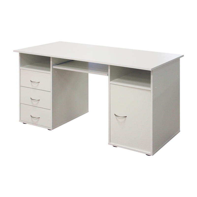 Stôl na počítač 194 biely je vhodný do kancelárie, pracovne i študentskej izby zariadenej bielym nábytkom. Stôl obsahuje 3 zásuvky a skrinku s dvierkami a variabilnou policou, uložíte tak doň všetko, čo potrebujete k práci. Možno namontovať aj výsuv pre klávesnicu, ktorá je súčasťou dodávky.Stôl na počítač 194, vo farebnom vyhotovení biela, je vhodný do kancelárie, pracovne i študentskej izby zariadenej bielym nábytkom. Pracovný stôl obsahuje 3 zásuvky a skrinku s dvierkami a variabilnou policou, uložíte tak doň všetko, čo potrebujete k práci, papiere, zmluvy aj dokumenty, pojme aj knihy či učebnice. Pri veľkom pracovnom stole sa vám bude pohodlne pracovať a všetko vám pôjde pekne od ruky. Za biely stôl na počítač prisuniete kancelársku stoličku v ľubovoľnom farebnom vyhotovení. Doplnky možno zvoliť tiež podľa vášho gusta. K stolu je možné namontovať aj výsuv pre klávesnicu, ktorá je súčasťou dodávky. Či už teda pracujete na počítači, či iba zapisujete poznámky do zošita, veľký stôl vám bude vyhovovať. Pracujte za poriadnym stolom.