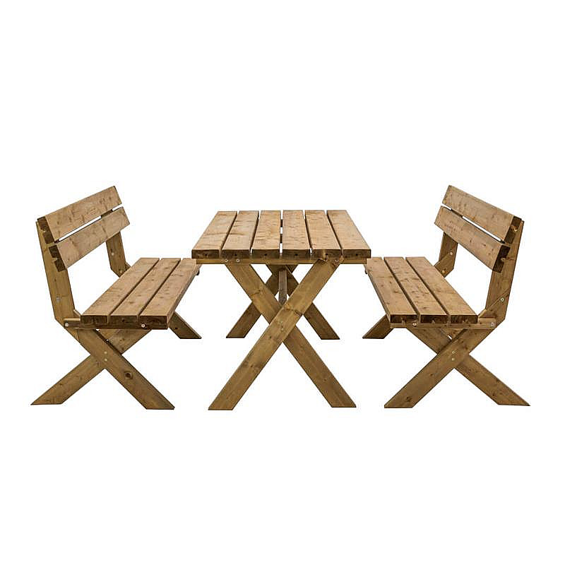 Záhradný sedací set PARTY vyrobený zo severskej borovice. Ak chcete zdieľať svoj čas s rodinou alebo priateľmi v srdci vašej záhrady alebo na terase, je táto zostava tou pravou voľbou. Pre dlhšiu životnosť je produkt tlakovo impregnovaný - hnedou tlakovou impregnáciou