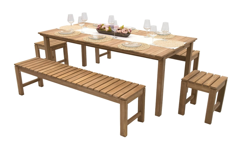 Aj napriek tomu sa jedná o odolný prírodný materiál, odporúčame nábytok raz ročne impregnovať teakovým olejom (viď príslušenstvo). Sestava obsahuje: 1x Záhradný pevný stôl obdĺžnik JOHNSON 200x100 cm (teak), 2x Záhradná teaková lavica JOHNSON 180 cm, 2x Záhradná stolička/taburet JOHNSON (teak)