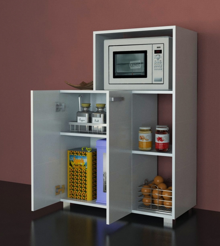 Skrinka má otvorený priestor na mikrovlnnú rúru a uzavretý úložný priestor s policou.