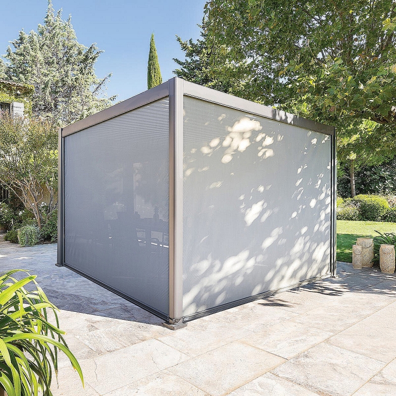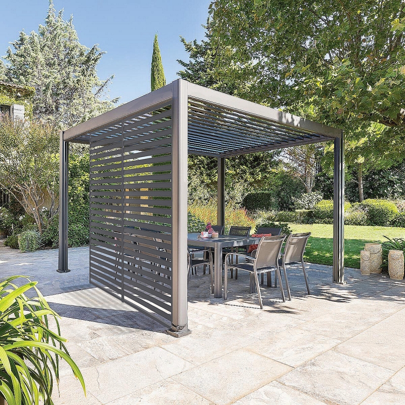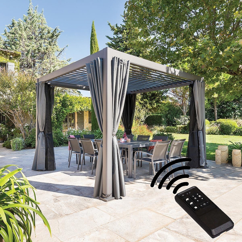 Pergola je vybavená elektrickou lamelovou strechou, ktorá sa dá otáčať pomocou diaľkového ovládača a prepúšťať alebo filtrovať svetlo. Ideálne riešenie pre tých, ktorí chcú veľký priestor na vonkajšie posedenie.