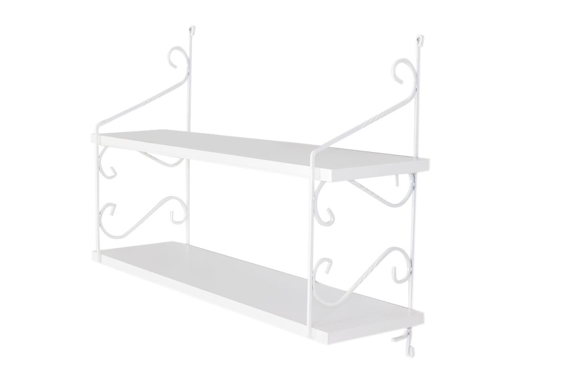 Policu tvoria dve poličky nad sebou, spojené kovovým zdobeným rámom.