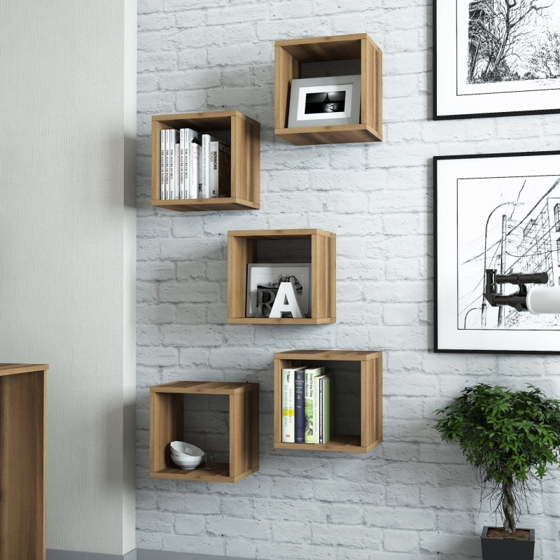 Zostava piatich nástenných políc BOX v rovnakom dekore.